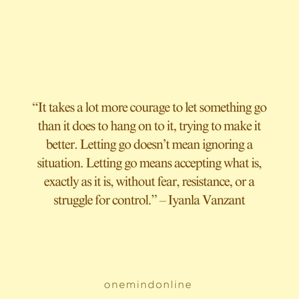 “It takes a lot more courage to let something go than it does to hang on to it, trying to make it better. Letting go doesn’t mean ignoring a situation. Letting go means accepting what is, exactly as it is, without fear, resistance, or a struggle for control.” – Iyanla Vanzant