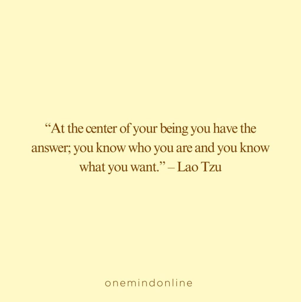 “At the center of your being you have the answer; you know who you are and you know what you want.” – Lao Tzu