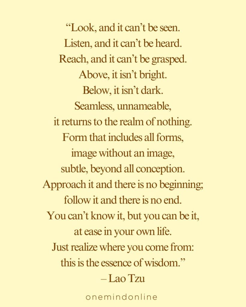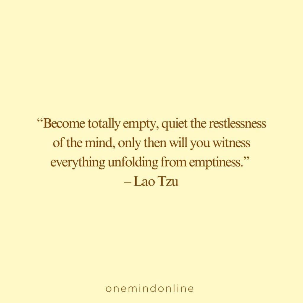 “Become totally empty, quiet the restlessness of the mind, only then will you witness everything unfolding from emptiness.” – Lao Tzu
