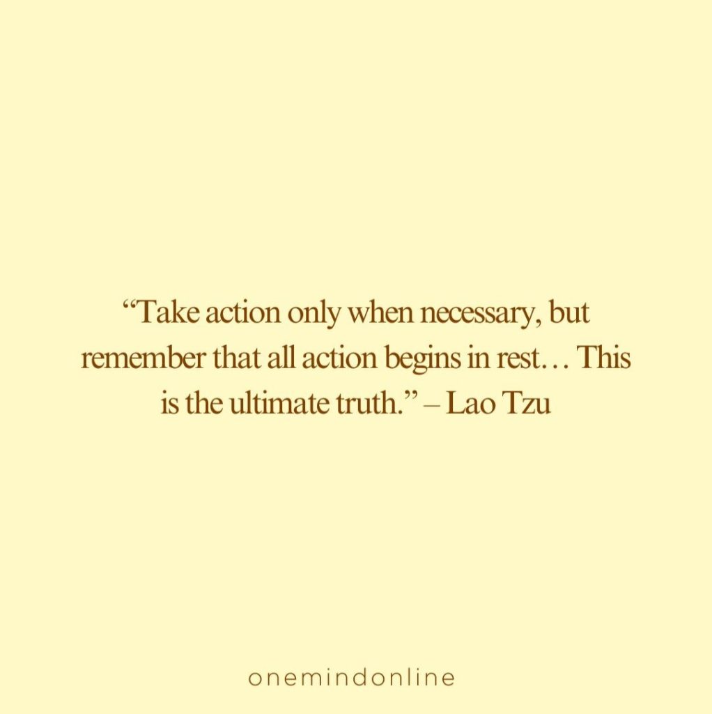 “Take action only when necessary, but remember that all action begins in rest… This is the ultimate truth.” – Lao Tzu
