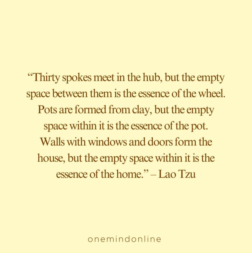 Walls with windows and doors form the house, but the empty space within it is the essence of the home.” – Lao Tzu