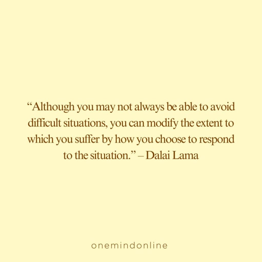“Although you may not always be able to avoid difficult situations, you can modify the extent to which you suffer by how you choose to respond to the situation.” – Dalai Lama