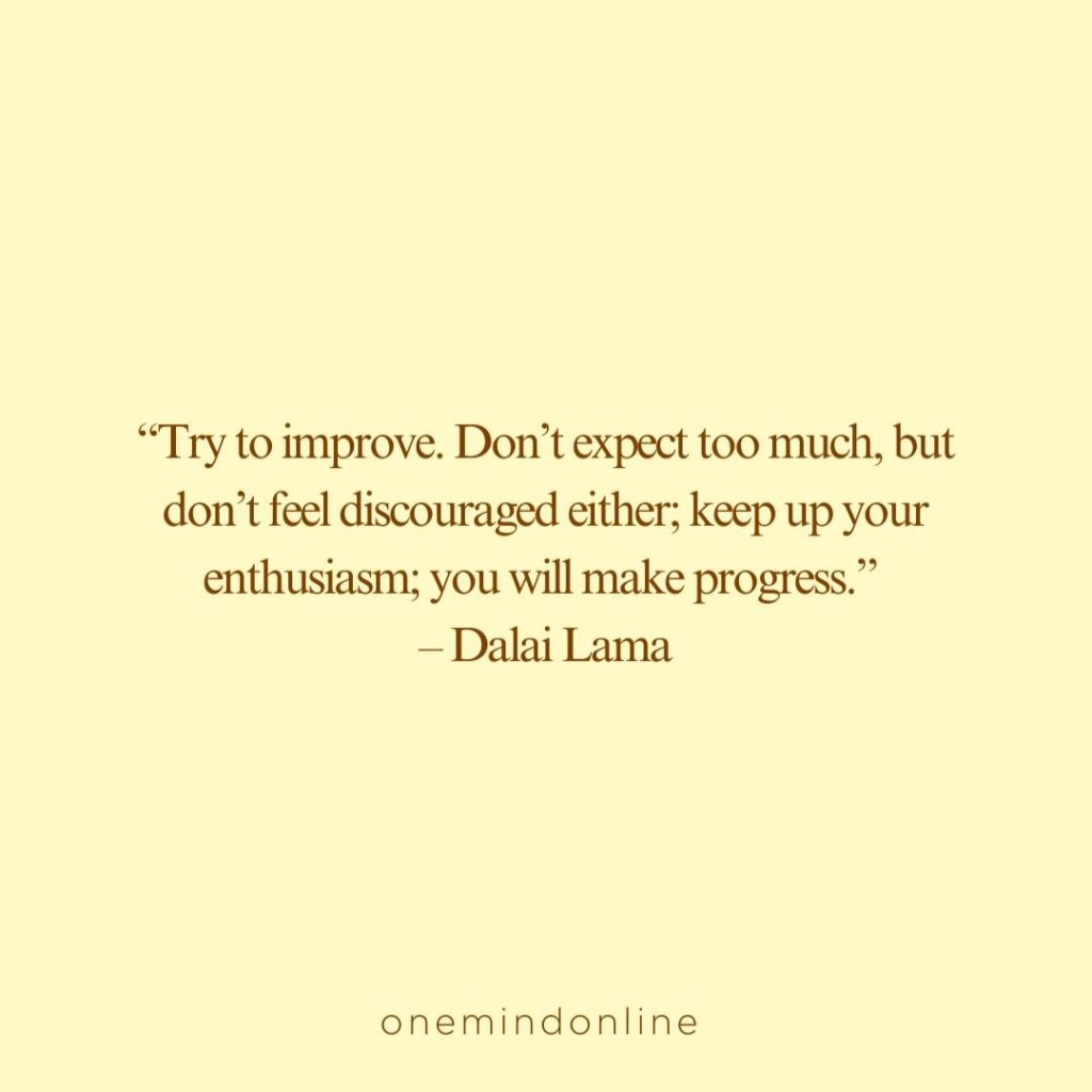 “Try to improve. Don’t expect too much, but don’t feel discouraged either; keep up your enthusiasm; you will make progress.” – Dalai Lama