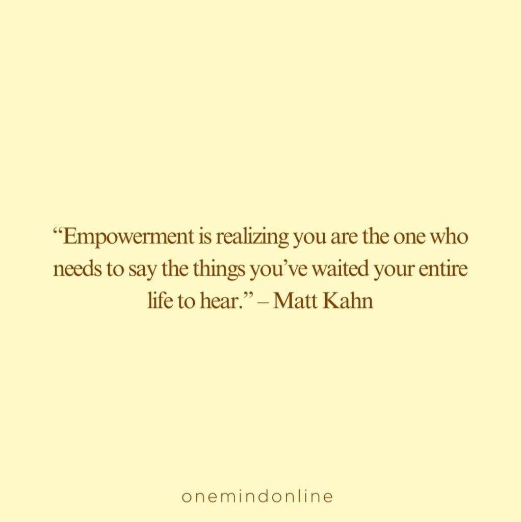 “Empowerment is realizing you are the one who needs to say the things you’ve waited your entire life to hear.” – Matt Kahn