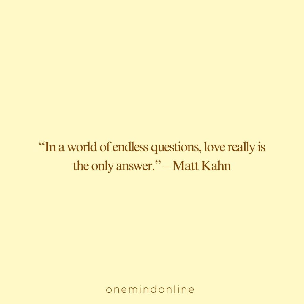 “In a world of endless questions, love really is the only answer.” – Matt Kahn