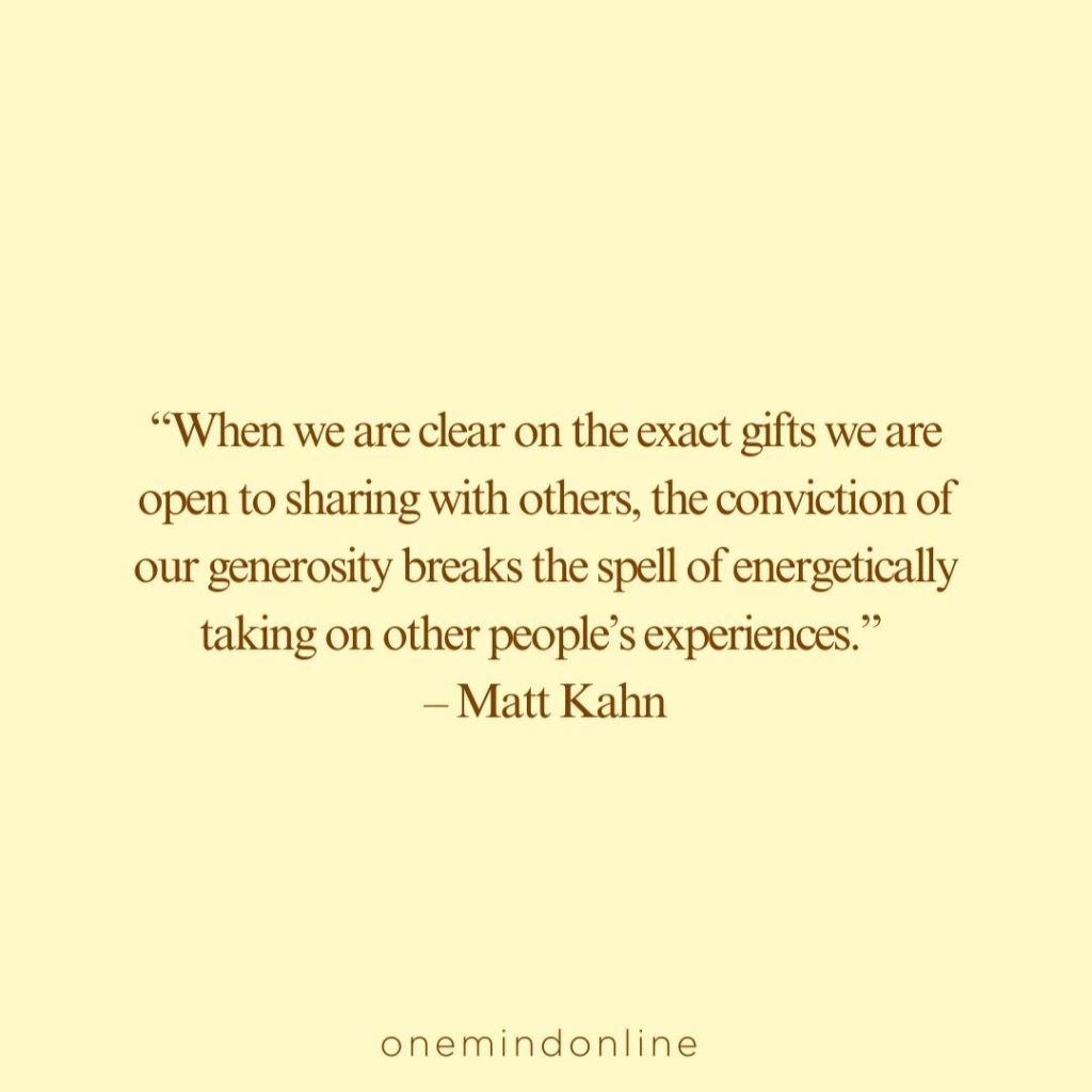 “When we are clear on the exact gifts we are open to sharing with others, the conviction of our generosity breaks the spell of energetically taking on other people’s experiences.” – Matt Kahn