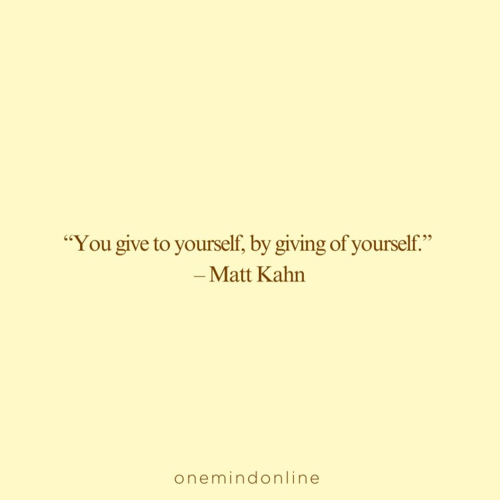 “You give to yourself, by giving of yourself.” – Matt Kahn