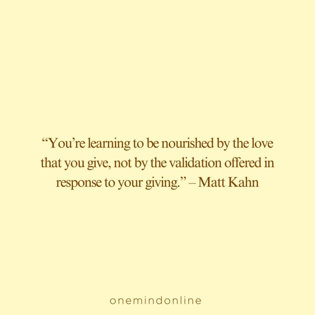 “You’re learning to be nourished by the love that you give, not by the validation offered in response to your giving.” – Matt Kahn
