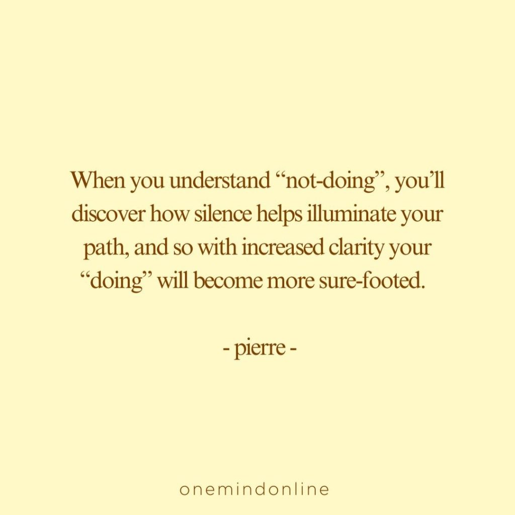 When you understand “not-doing”, you’ll discover how silence helps illuminate your path, and so with increased clarity your “doing” will become more sure-footed.