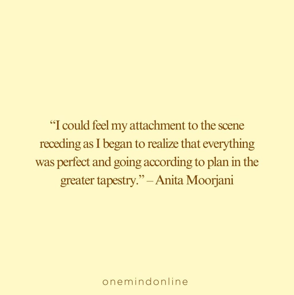 “I could feel my attachment to the scene receding as I began to realize that everything was perfect and going according to plan in the greater tapestry.” – Anita Moorjani