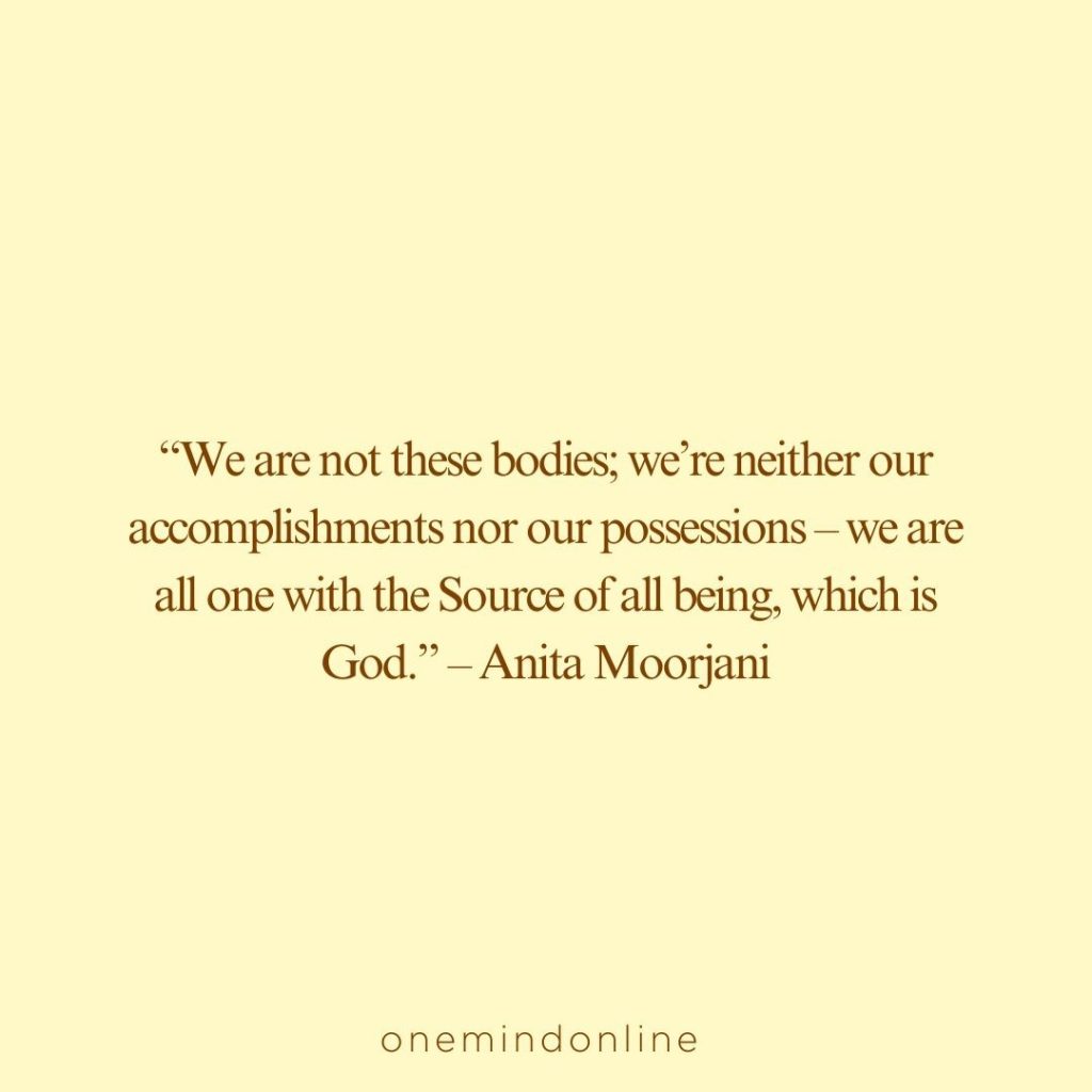 “We are not these bodies; we’re neither our accomplishments nor our possessions – we are all one with the Source of all being, which is God.” – Anita Moorjani