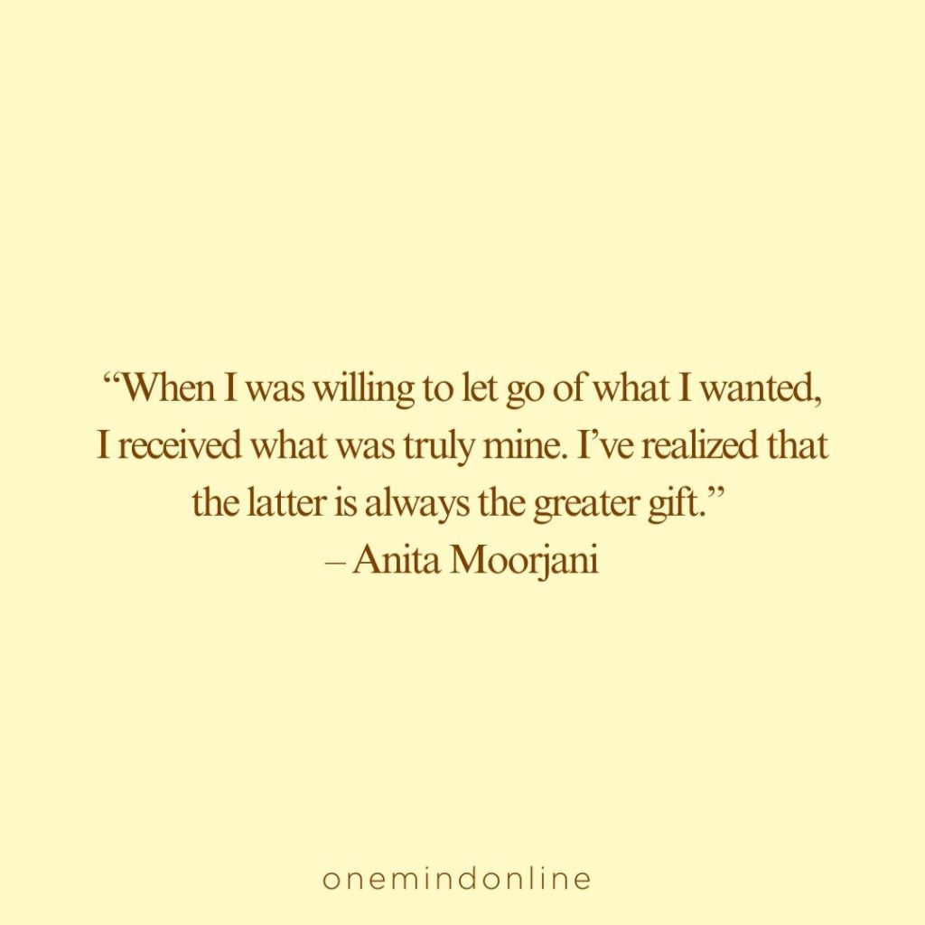 “When I was willing to let go of what I wanted, I received what was truly mine. I’ve realized that the latter is always the greater gift.” – Anita Moorjani