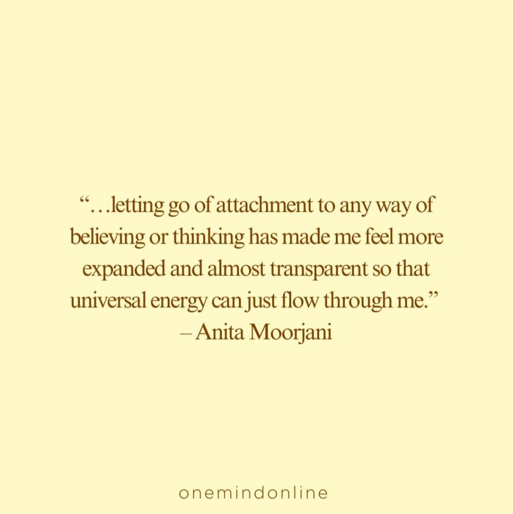 “…letting go of attachment to any way of believing or thinking has made me feel more expanded and almost transparent so that universal energy can just flow through me.” – Anita Moorjani