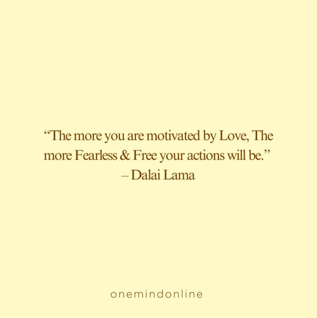 “The more you are motivated by Love, The more Fearless & Free your actions will be.” – Dalai Lama