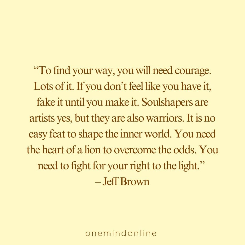 “To find your way, you will need courage. Lots of it. If you don’t feel like you have it, fake it until you make it. Soulshapers are artists yes, but they are also warriors. It is no easy feat to shape the inner world. You need the heart of a lion to overcome the odds. You need to fight for your right to the light.” – Jeff Brown