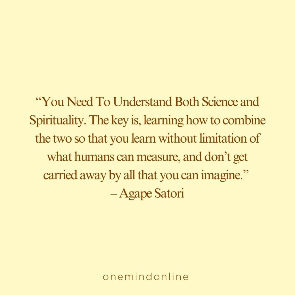“You Need To Understand Both Science and Spirituality. The key is, learning how to combine the two so that you learn without limitation of what humans can measure, and don’t get carried away by all that you can imagine.” – Agape Satori
